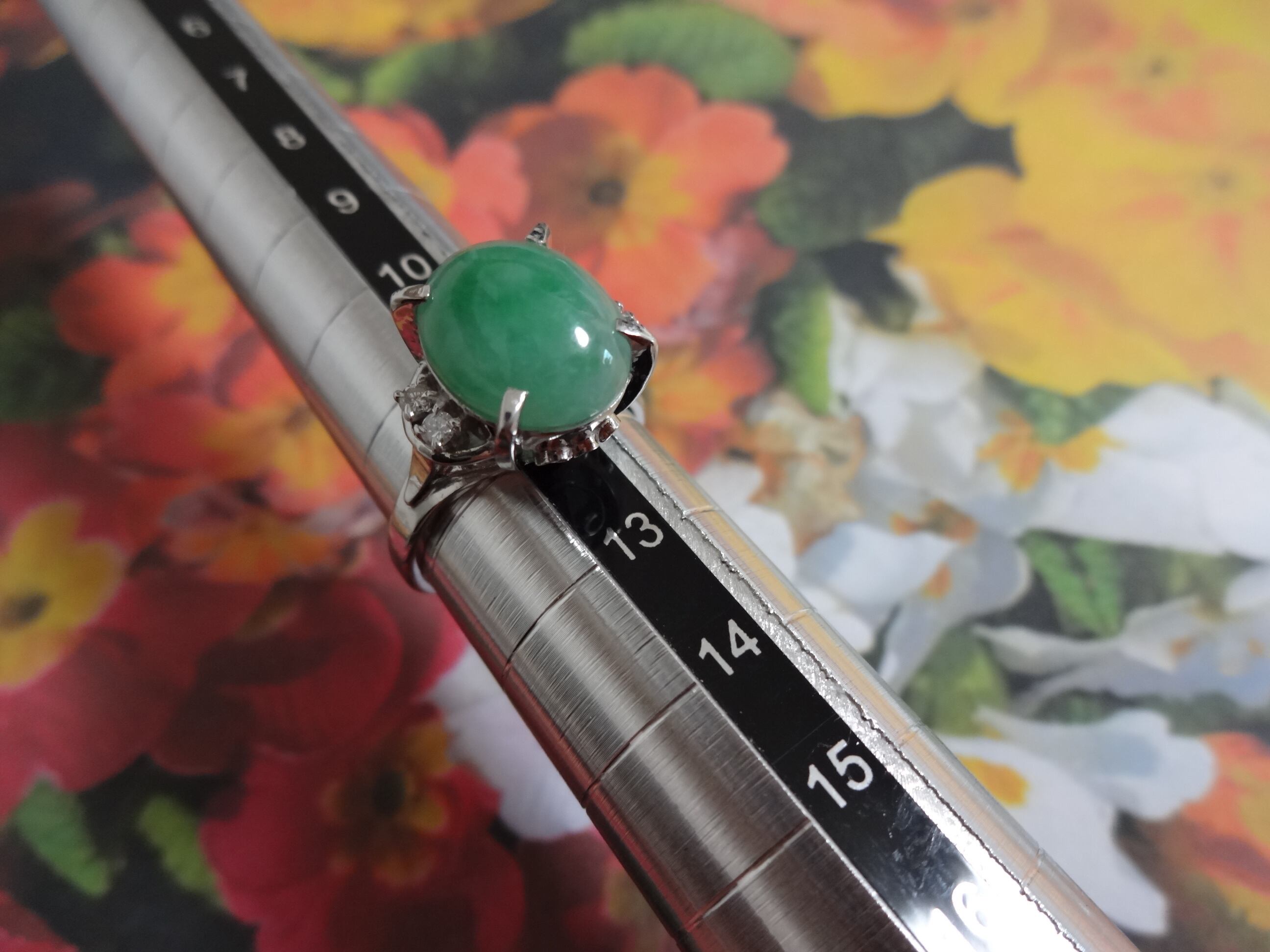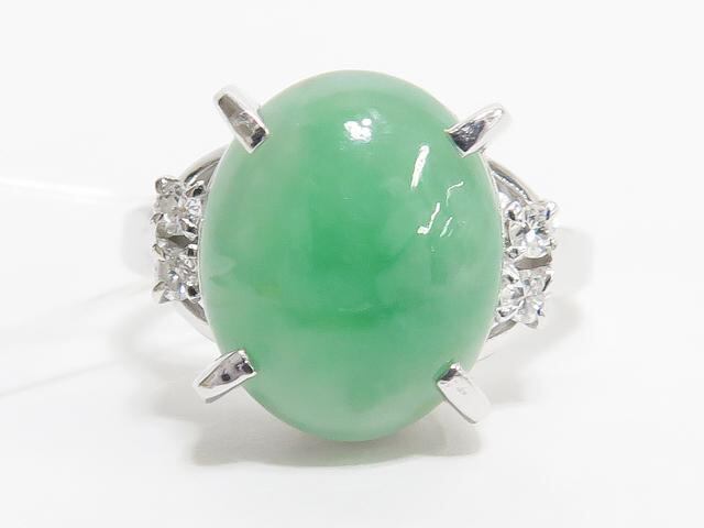 5.272ctの希少価値の高い天然翡翠(ジェイダイト)を中石にダイヤモンドを脇石にセットしたプラチナリングです。