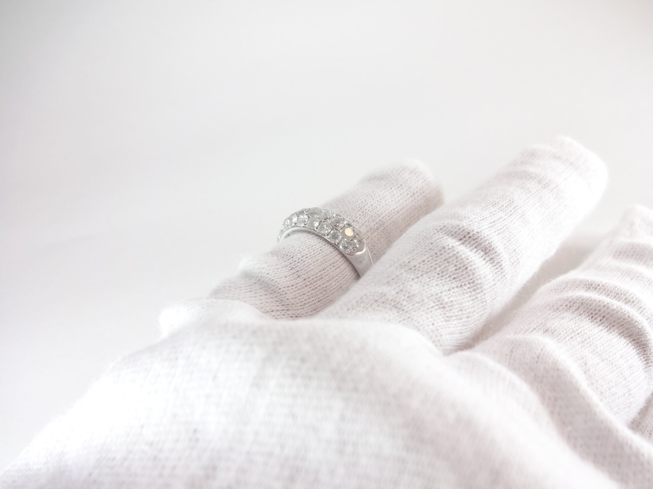前面の10時~2時の方向にダイヤが一石一石丁寧にセットされ、上品で素敵なリングです。