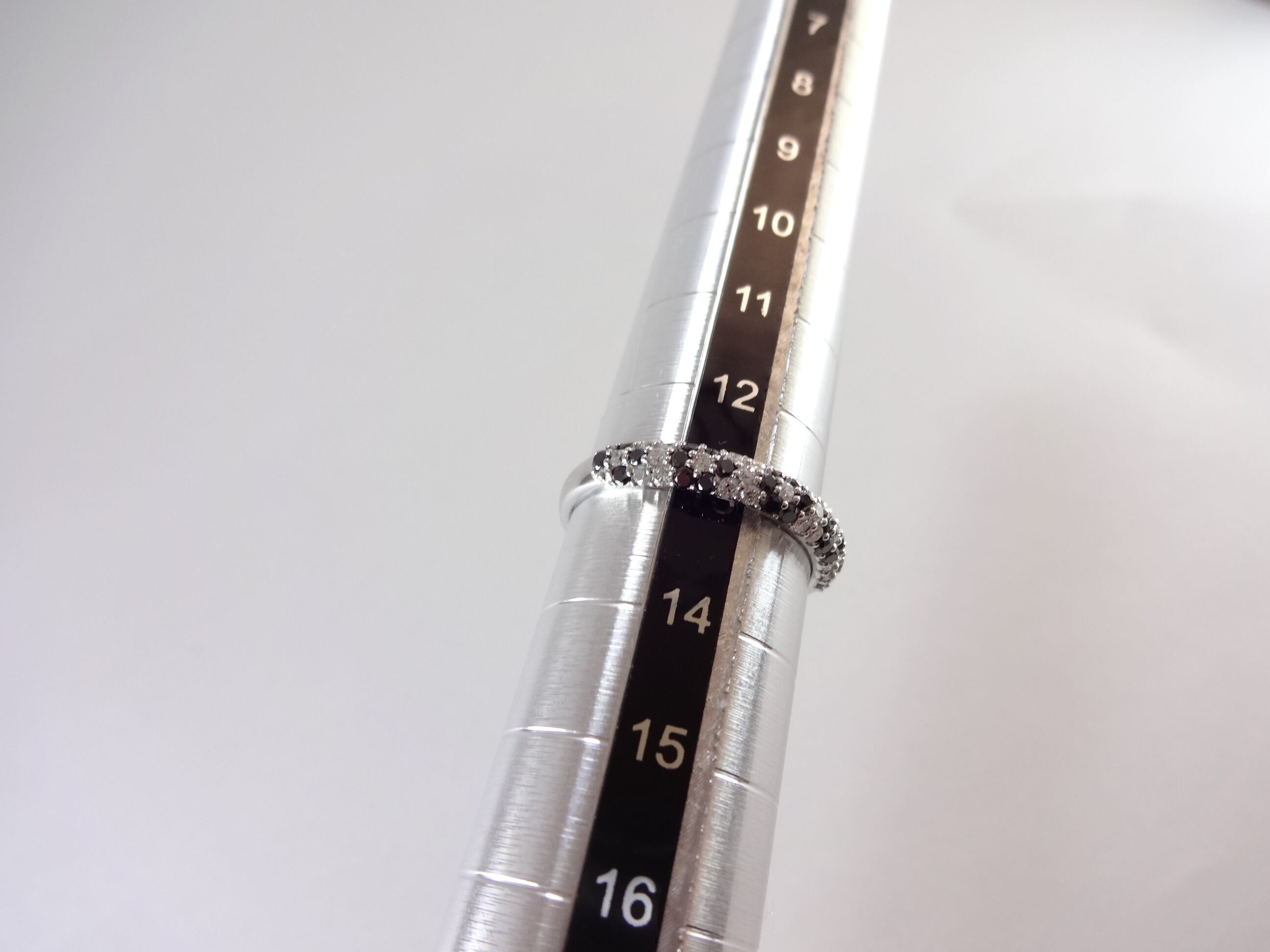 ダイヤとブラックダイヤのコンビネーションのリングで年齢とわずお楽しみいただけるデザインになっております。10時~2時の方向にダイヤモンドがセットされております。