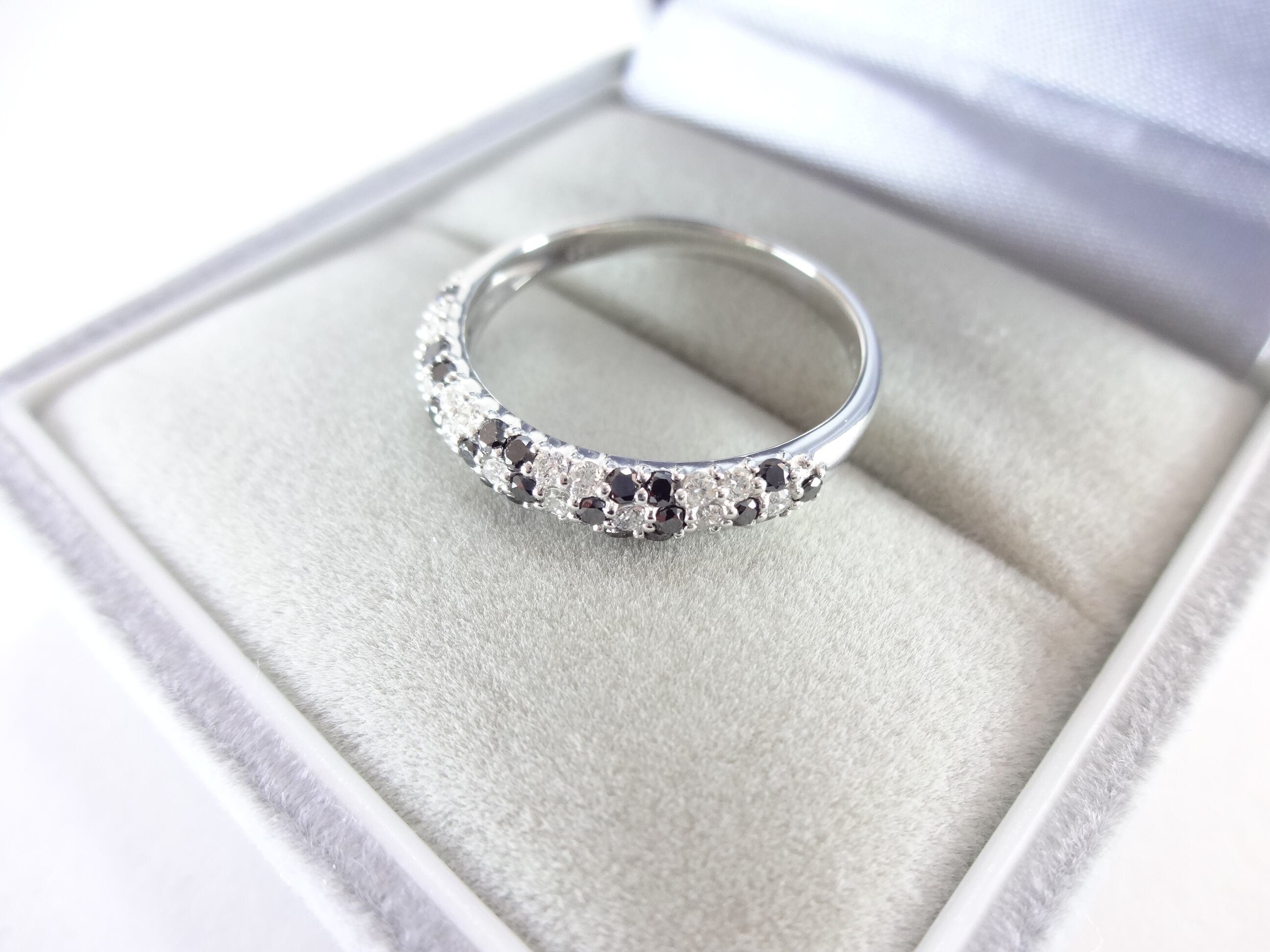 【完売しました】0.51ct ブラックダイヤ/ダイヤ ハーフエタニティ パヴェリング K18WG
