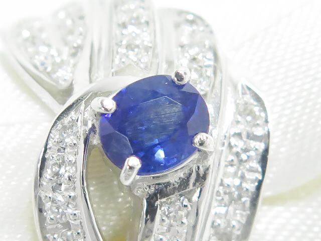 とても美しいサファイヤを0.56ctを採用しております、脇石にはダイヤモンドが丁寧にセットされており、更にデザインもゴージャスな印象を受けると思います。誰がみても品質の高さが一目でわかると思います☆