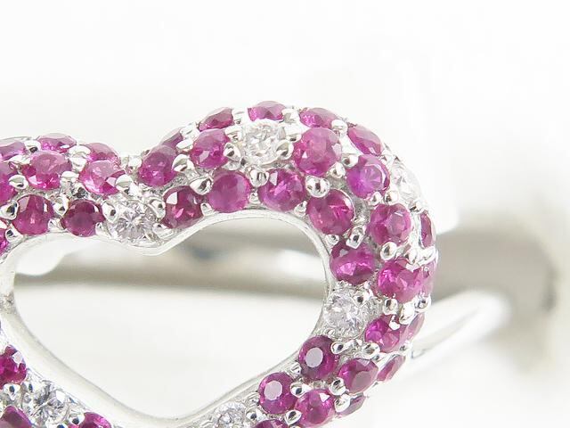 ハート型デザインにルビーとパヴェダイヤのコンビが素敵なリングです。