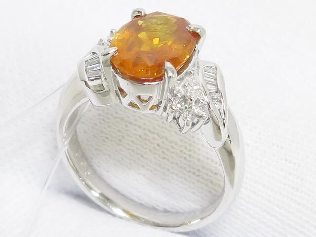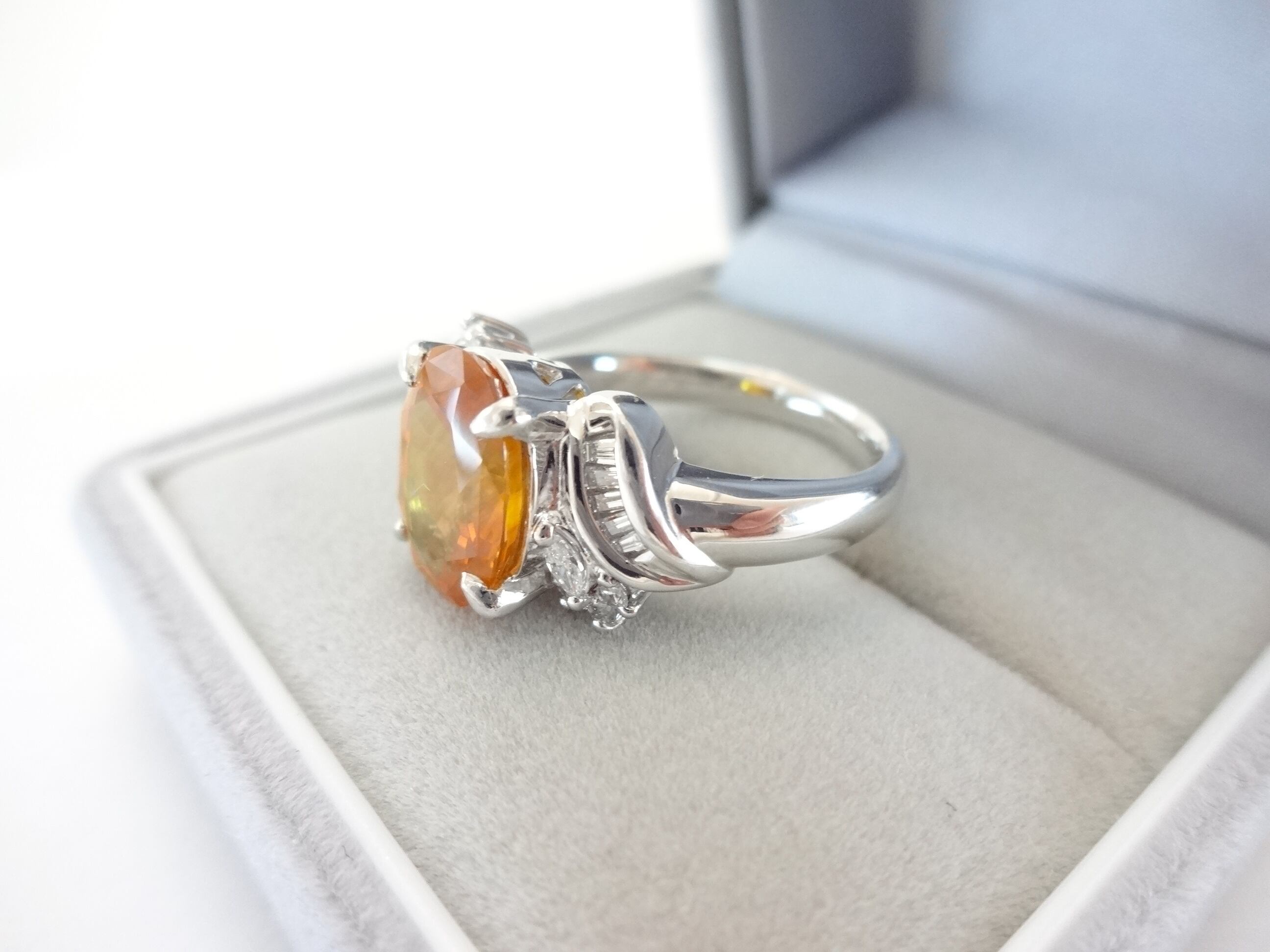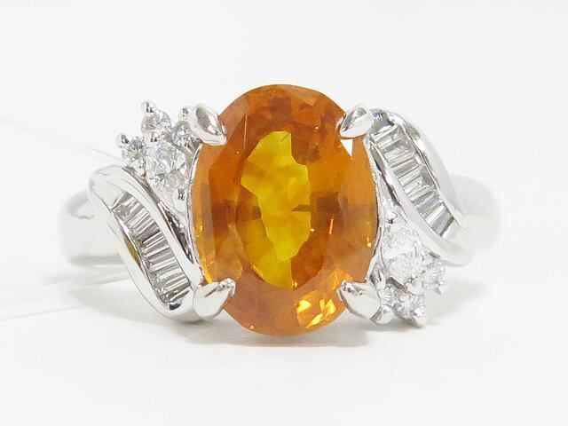 【完売しました】ゴールデンサファイア ダイヤリング プラチナ 3.36ct 0.20ct