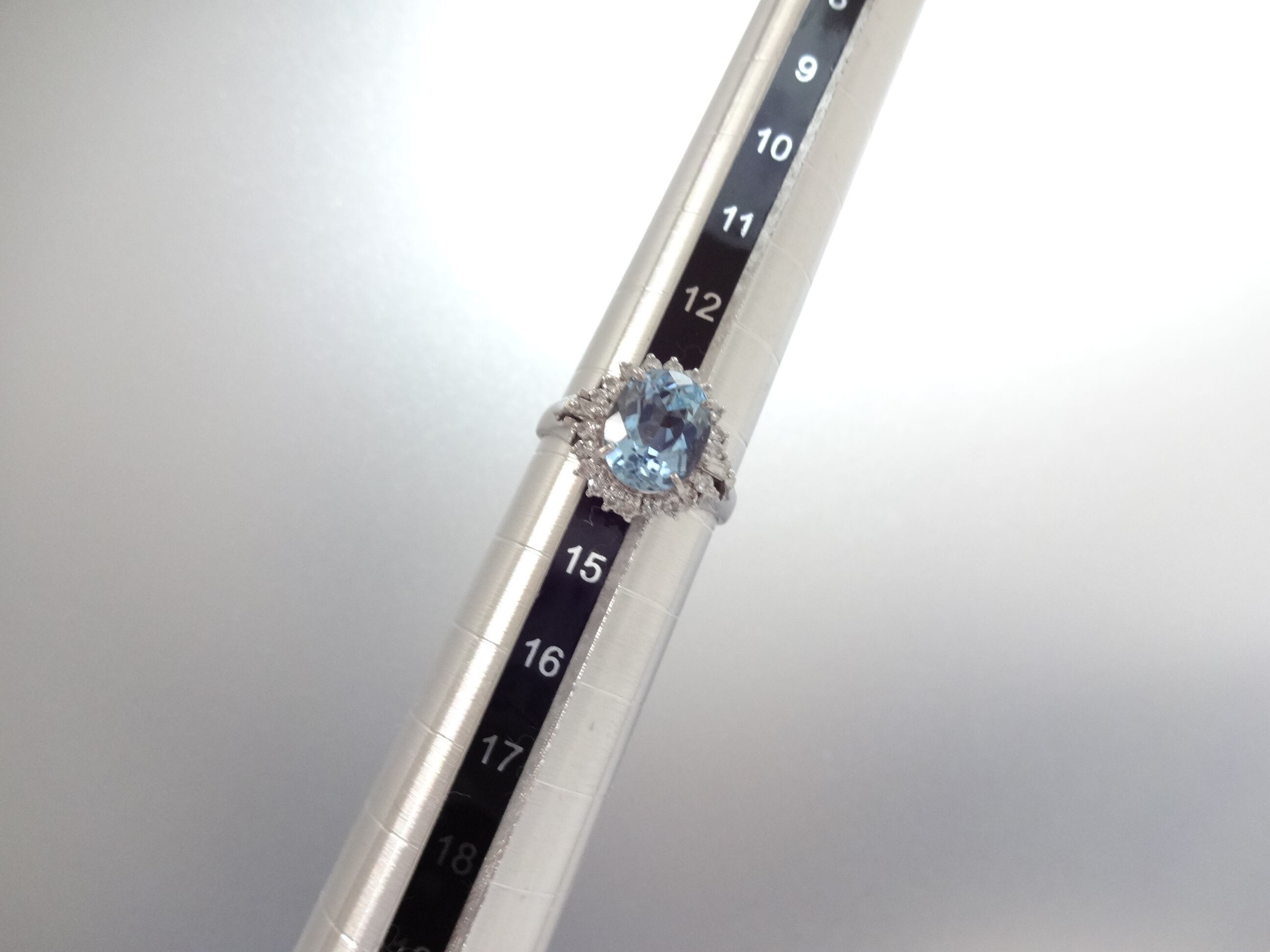 【完売しました】アクワマリン ダイヤリング プラチナ 2.38ct 0.31ct