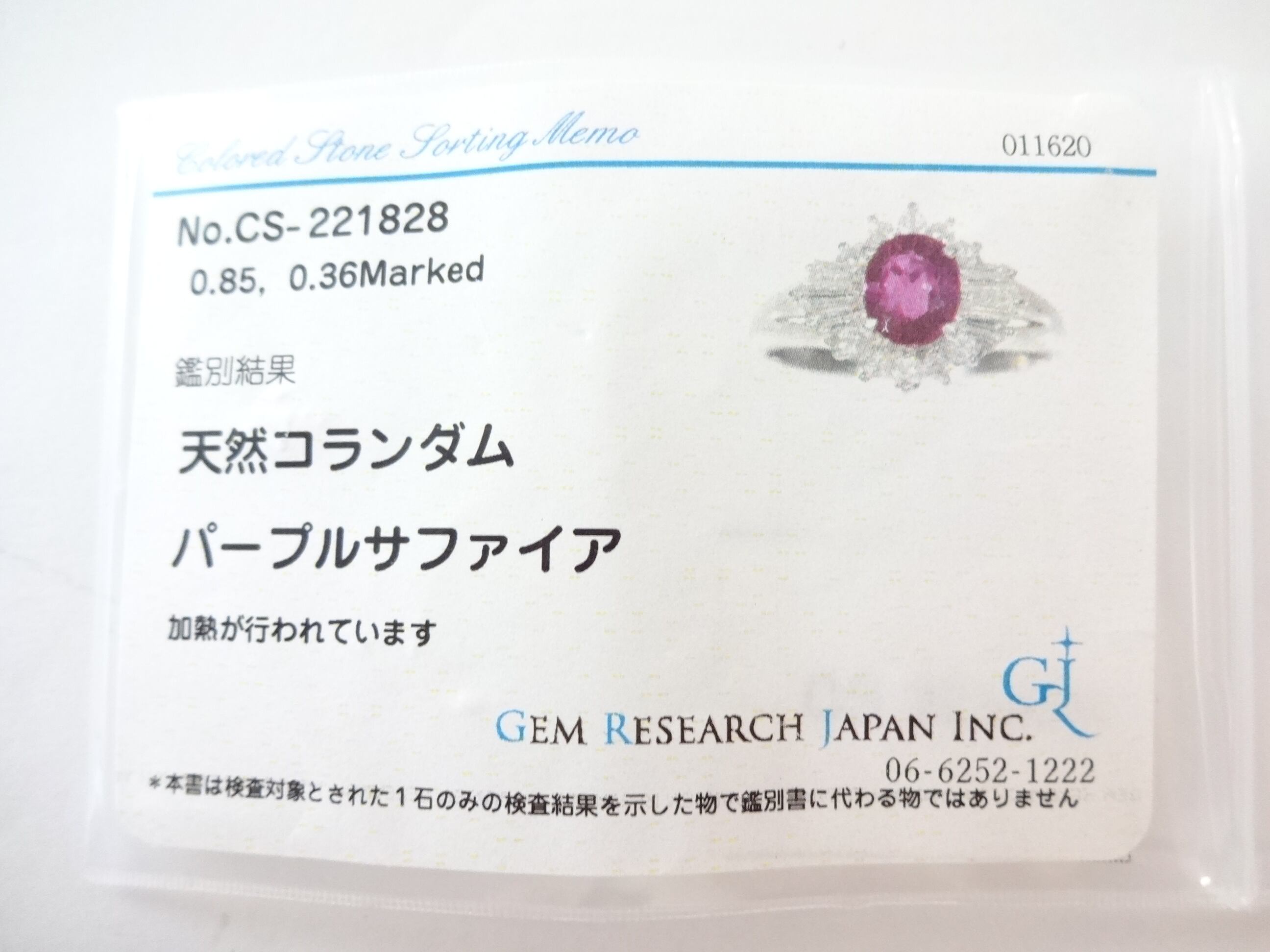 パープルサファイア 0.85ct