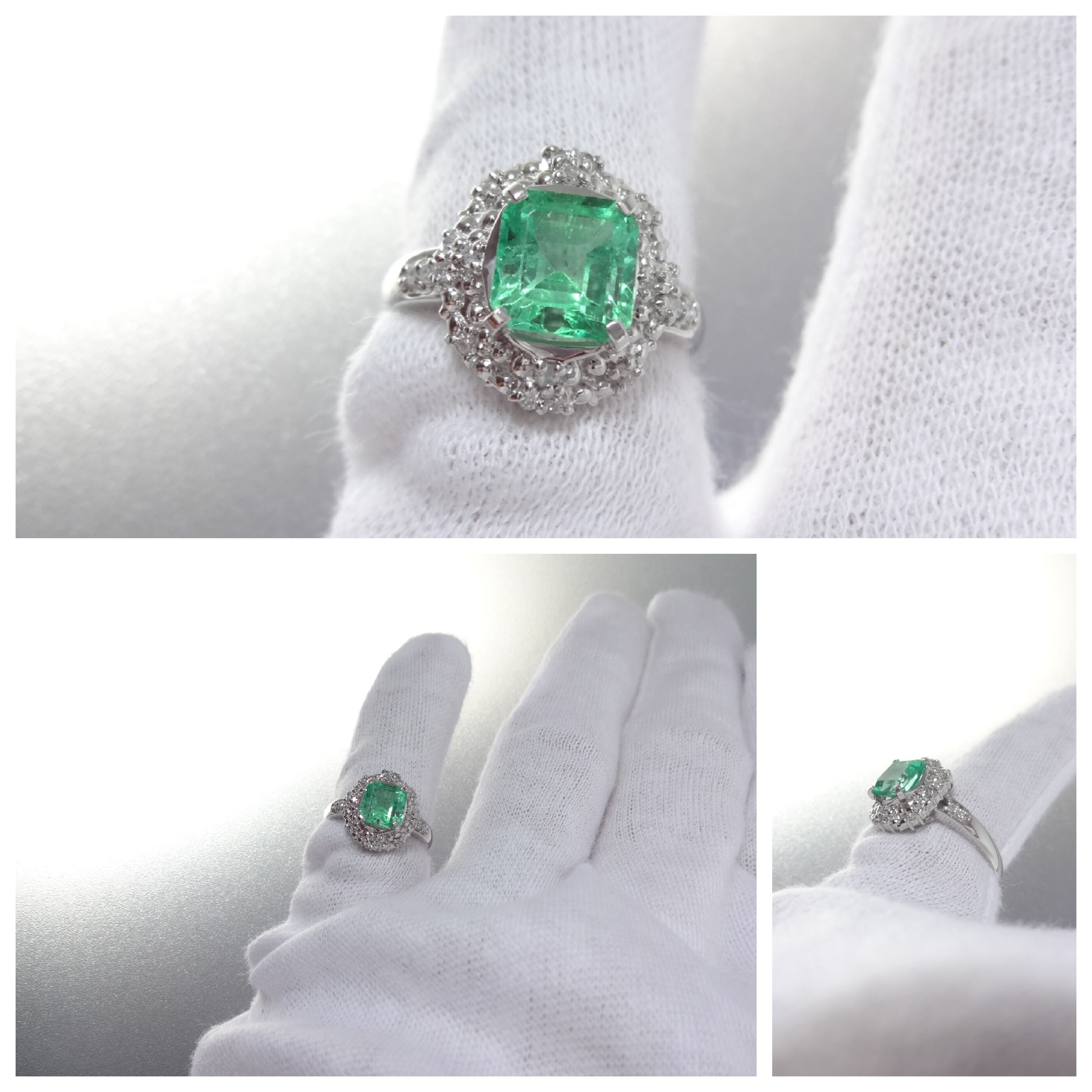 【SOLD OUT】天然エメラルド ダイヤリング プラチナ 1.33ct 0.10ct ~【Super Good Condition】 Natural emerald diamond platinum 1.33ct 0.10ct~